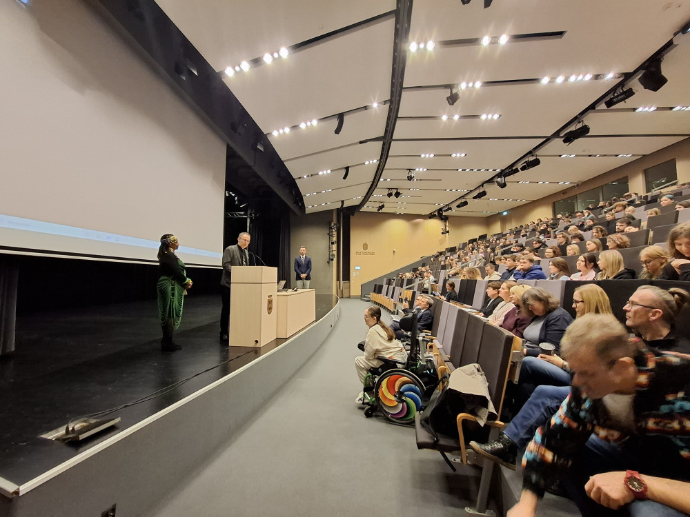 Spotkanie i wykład Nomvuli Mngomezulu, Ambasador Republiki Południowej Afryki, odbył się we wtorek 16 grudnia o 11:30 w Sali Teatralnej im. Jerzego Limona 019 w budynku Neofilologii na Wydziale Filologicznym UG. Ogromna rzesza studentów wysłuchała wykładu Pani Ambasador zatytułowanego Abandonment of Apartheid and the Process of National Reconciliation in South Africa/ Porzucenie apartheidu i proces pojednania narodowego w Południowej Afryce, a wygłoszonego w święto narodowe RPA Reconciliation Day/ Dzień Pojednania. Święto to jest poświęcone pamięci skomplikowanych wydarzeń historycznych - zakończenia apartheidu w 1994 roku i stanowi symbol jedności, przebaczenia i narodowego pojednania - o czym mówiła Pani Ambasador Nomvuli Mngomezulu w kontekście praw człowieka i sprawiedliwości. Spotkanie organizowane jest we współpracy z Instytutem Lecha Wałęsy, a poprowadził je dr Miłosz Wojtyna z Instytutu Anglistyki i Amerykanistyki. W imieniu władz gościa przywitał dr hab. Mikołaj Rychło, prof. UG, prodziekan ds. Nauki i Umiędzynarodowienia.