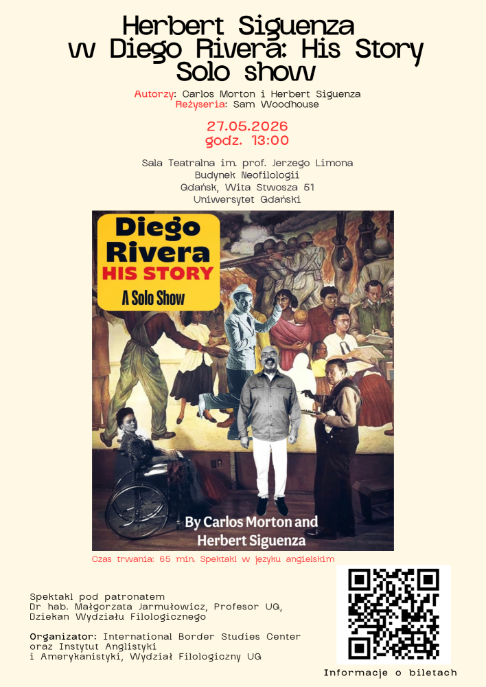 W ramach konferencji Border Seminar 2026: "Conquest, Borders, Arts" organizowanej przez International Border Studies Centero raz pierwszy w Polsce wystąpi uznany amerykański aktor, dramaturg, i artysta malarz Herbert Siguenza. 27 maja 2026 roku w Gdańsku zaprezentuje swój autorski monodram „Diego Rivera: His Story” – wydarzenie stanowiące centralny punkt międzynarodowej konferencji Border Seminar 2026: "Conquest, Borders, Arts".