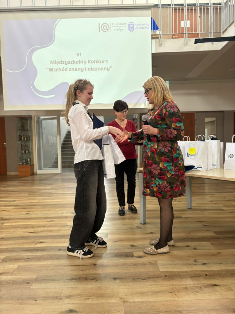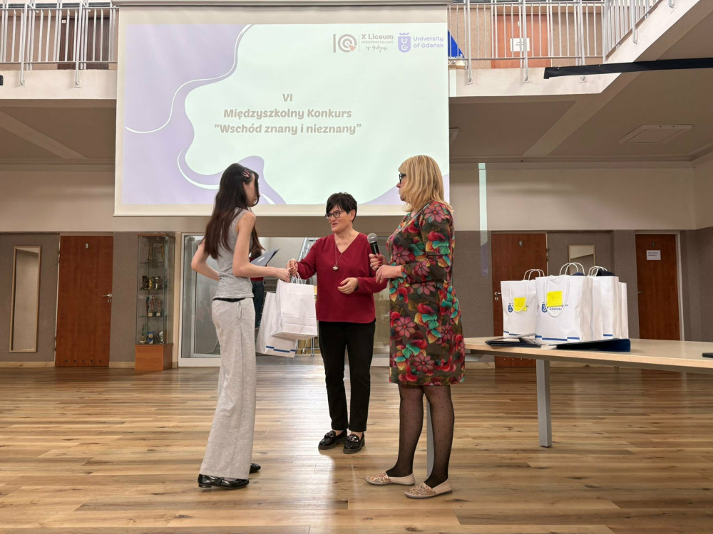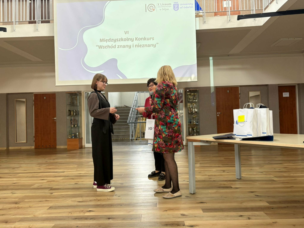 23.03.2026 r. odbyła się uroczystość wręczenia nagród laureatom VI Międzyszkolnego Konkursu „Wschód znany i nieznany” zorganizowanego przy współpracy Instytutu Rusycystyki i Studiów Wschodnich UG z X Liceum Ogólnokształcącym w Gdyni.