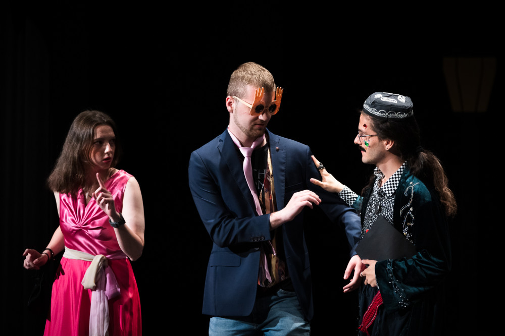 3) I wreszcie rzecz najważniejsza! Cały drugi semestr poświęciliśmy na przygotowanie spektaklu „Dama Pikowa” na podstawie opowiadania Aleksandra Puszkina. Co sobota zbieraliśmy się na Sali Teatralnej im. Jerzego Limona na próbach, aby z okazji Dnia Słowiańskiego Piśmiennictwa i Kultury zaprezentować wyniki naszej pracy społeczności akademickiej i gościom zewnętrznym. Nagrodzono nas owacjami na stojąco, dostaliśmy również zaproszenie do udziału w Przeglądzie Studenckich Aktywności Twórczych w