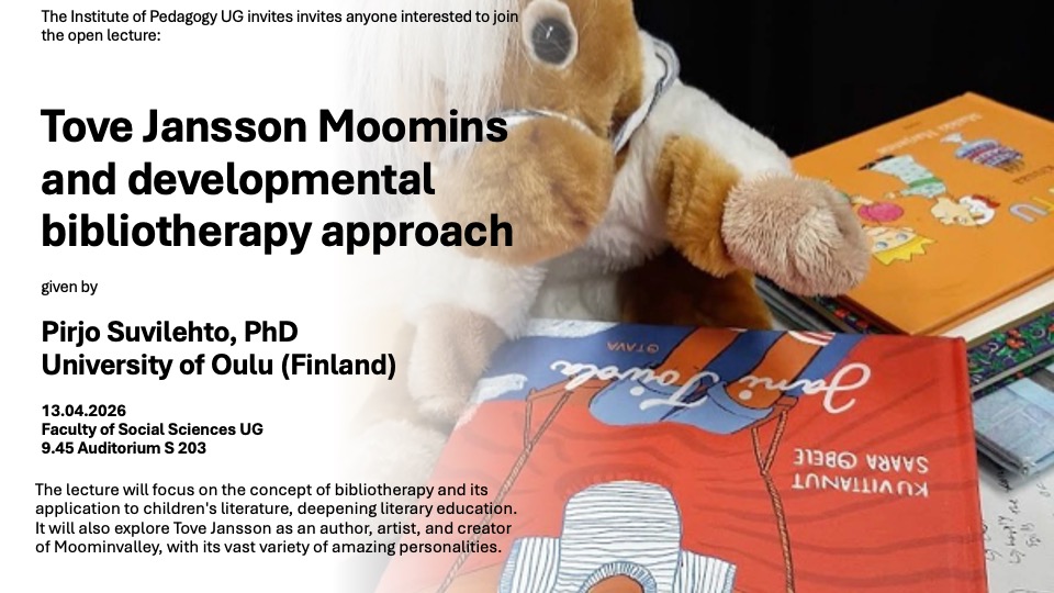 W poniedziałek 13 kwietnia br. w godz. 9:45 - 11:15 badaczka z University of Oulu, PhD Pirjo Suvilehto wygłosi wykład pt. "Tove Jansson Moomins and developmental bibliotherapy approach".